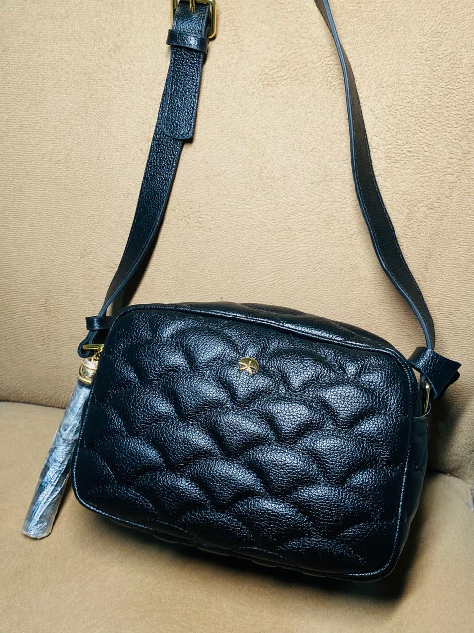 Com formato estruturado e detalhes que equilibram sofisticação e praticidade, esta bolsa média é confeccionada em couro preto com textura matelassê em padrão de caliandras. O modelo apresenta acabamento arredondado nas bordas e fechamento por zíper com puxador em franjas longas (tassels) de couro e corrente dourada. O logo metálico aplicado na parte frontal centraliza o visual com elegância discreta. A alça longa regulável permite uso no ombro ou cruzado, ideal para acompanhar diferentes momentos do dia com charme e funcionalidade. O interior é forrado com tecido geométrico e compartimento único espaçoso. Um acessório atemporal com personalidade e textura marcante.
