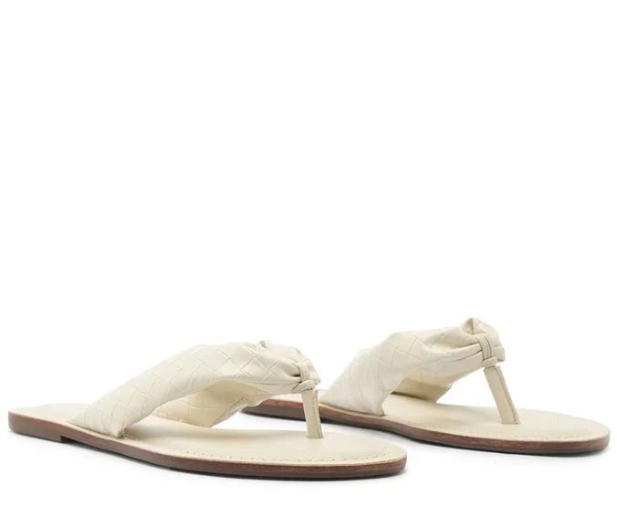 Rasteira de tira única, com detalhe em tressê, na cor branca. O modelo possui solado rasteiro emborrachado com leve saltinho traseiro e biqueira arredondada. Traz cabedal com tira central mais larga, de material similar ao couro soft - com efeito em tressê - que passa entre os dedos e segue pelas laterais. Com palmilha comfy no mesmo tom da peça, contornada em pespontos delicados e assinatura Anacapri.