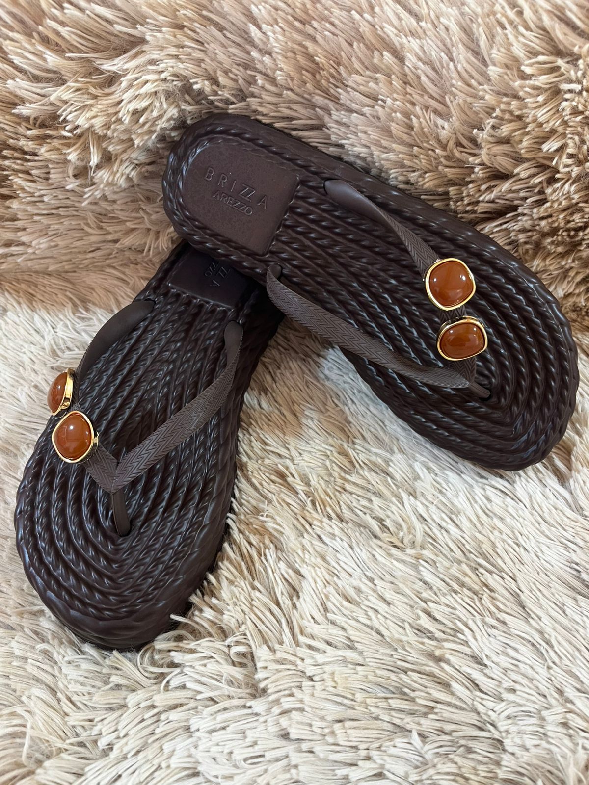 CHINELO DE DEDO MARROM MARROCOS FLIP FLOP PEDRAS- AREZZO BRIZZA