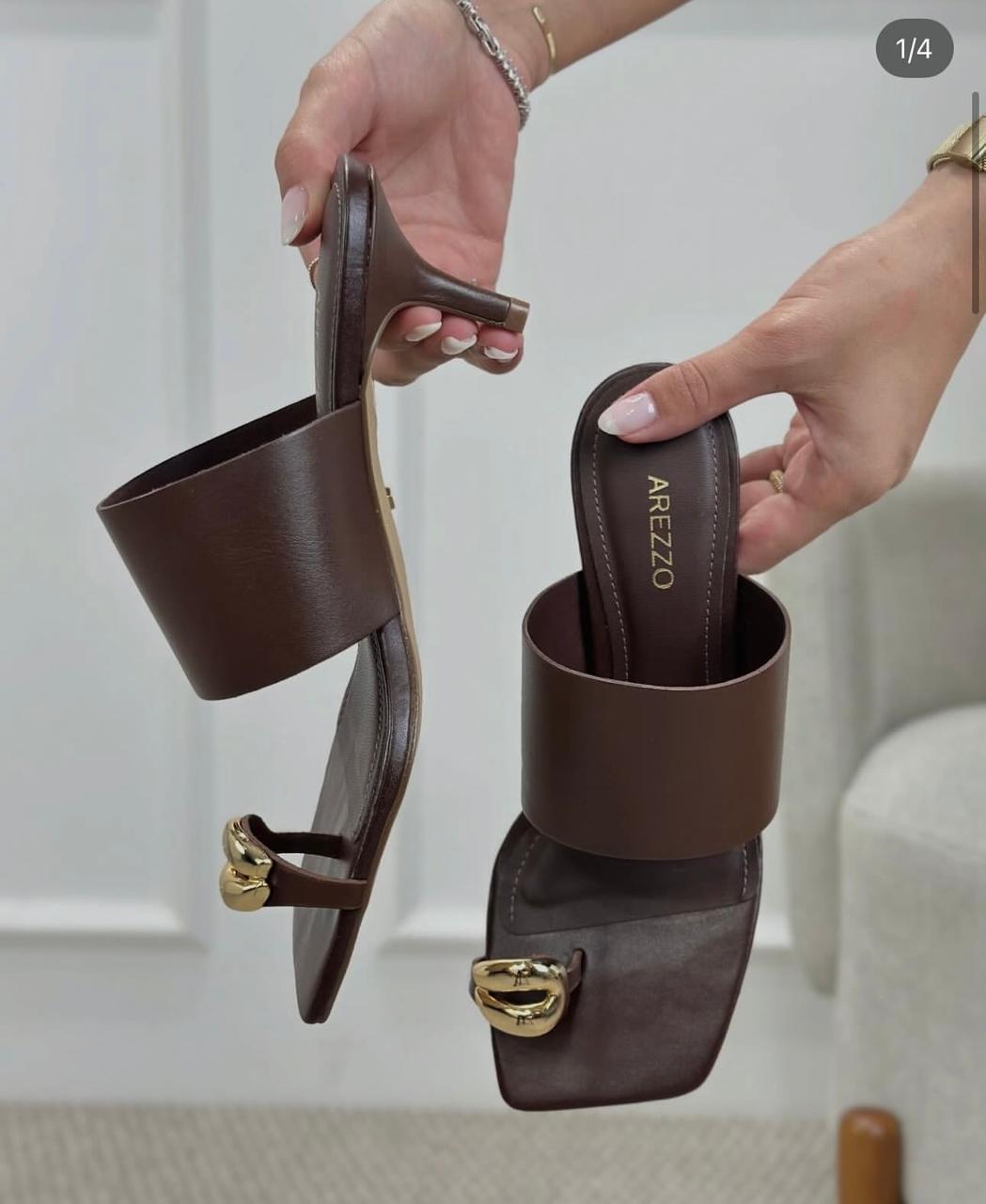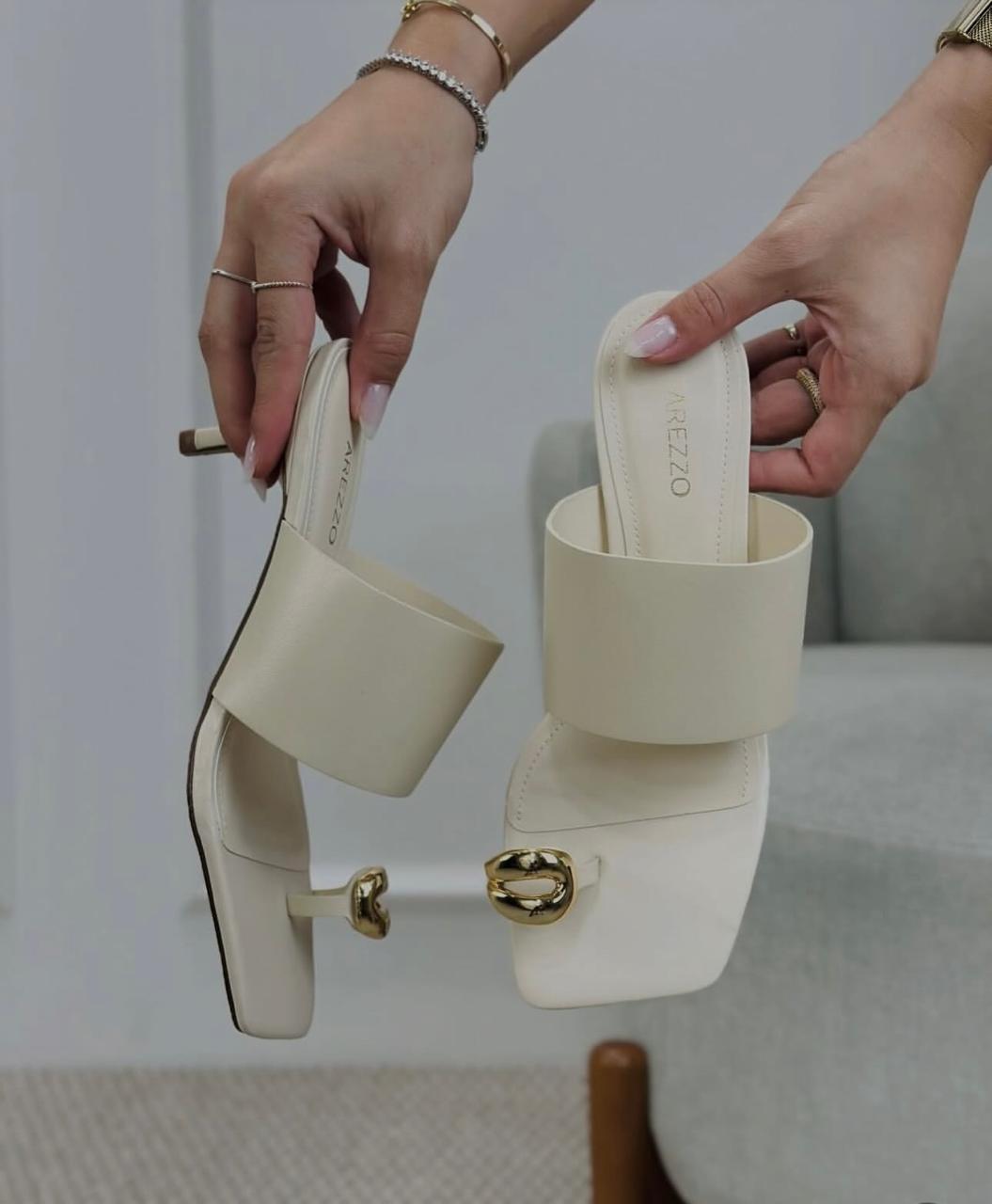 Sandália Branca Arezzo Couro Salto Fino Metal Bold