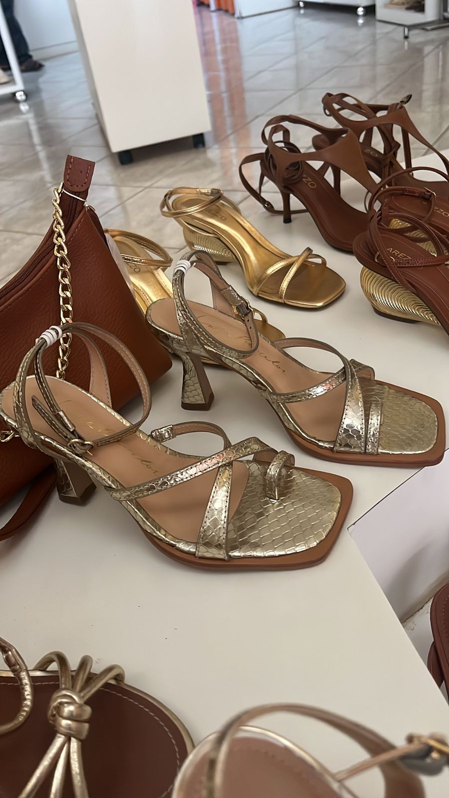Minimalista e atemporal, esta sandália traduz elegância descomplicada para o dia a dia. O design valoriza a silhueta com tiras que envolvem o pé com delicadeza, garantindo conforto e estilo. O modelo, produzido em couro cobra metalizado no tom dourado, possui tira de dedo, dupla de tiras cruadas, salto flare alto e fechamento por fivela de ajuste no tornozelo.