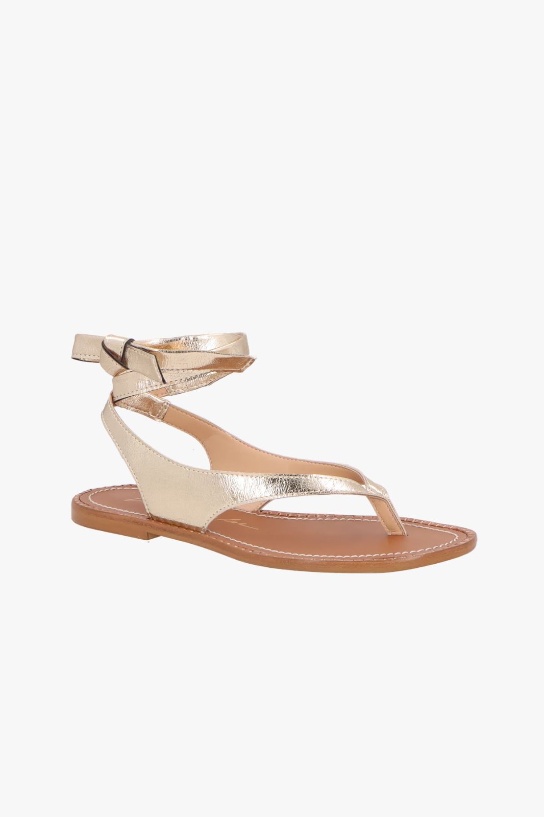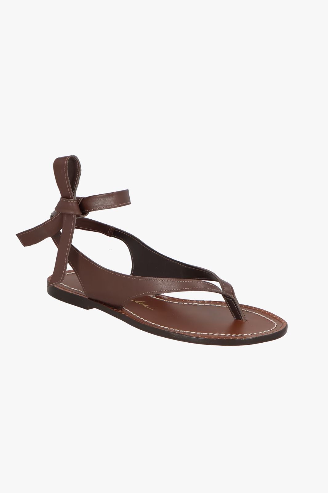 SANDÁLIA DE DEDO EM COURO CAFÉ COM AMARRAÇÃO NO TORNOZELO