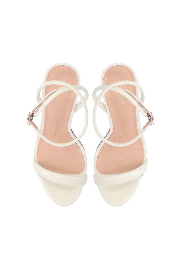 Peça chave no amarário de toda mulher, a sandália de salto alto é a combinação perfeita entre elegância e modernidade. O modelo, produzido em material tecnológico com acabamento em verniz no tom branco gelo, possui salto alto fino, bico aberto arredondado e fechamento por fivela ajustável no tornozelo.