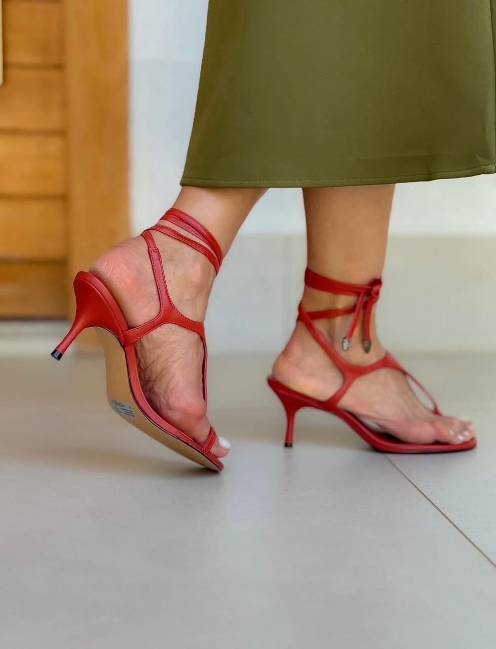 Sandália Marrom Couro Salto Fino Amarração