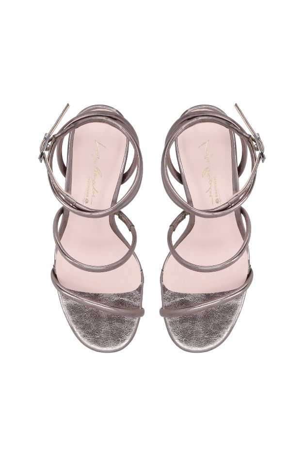 SANDÁLIA SALTO MÉDIO TIRAS PARALELAS ROLOTE CHUMBO