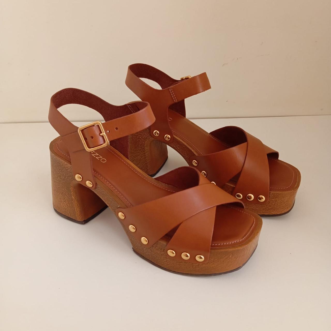 Sandalia Feminina Couro Salto Médio Couros-Marrom. Atanado Thick Rustic Soul Natural.
