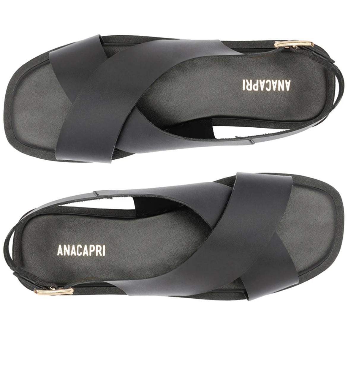 Sandália Rasteira Nina em couro e tiras cruzadas, na cor marrom. O modelo em couro, possui solado emborrachado com leve saltinho traseiro. Apresenta cabedal em duas tiras mais largas - que se cruzam em design de “X” - sobre os dedos e peito de pé, que seguem pelas laterais da pala e contornam o calcanhar, com fecho afivelado ajustável na lateral. De biqueira quadrada, traz palmilha acolchoada de mesmo tom da peça, com assinatura Anacapri.