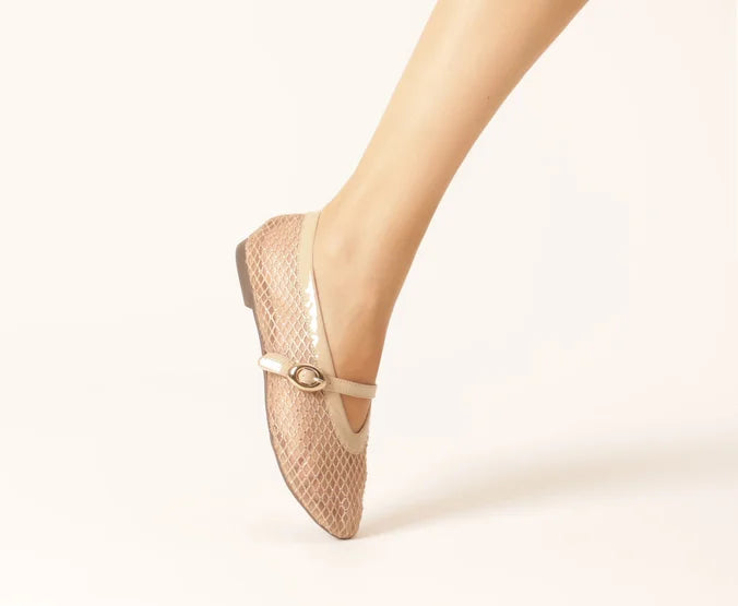 Sapatilha Brigitte em tela, na cor bege. O modelo - estilo boneca - possui solado rasteiro e emborrachado com leve saltinho traseiro e biqueira arredondada. Traz cabedal em tela transparente com efeito tramado, recorte arredondado sobre o peito de pé e contorno em fita no mesmo tom da peça. Fechada, traz tira média afivelada - redonda e metálica - com regulagem sobre o peito do pé. Com palmilha confortável e assinatura Anacapri.